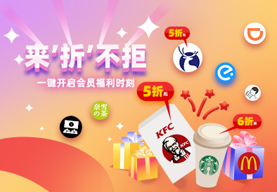 肯德基5折、星巴克6折、瑞幸咖啡5折、滴滴打車8折……超多會員專享折扣,開啟會員福利時(shí)刻!